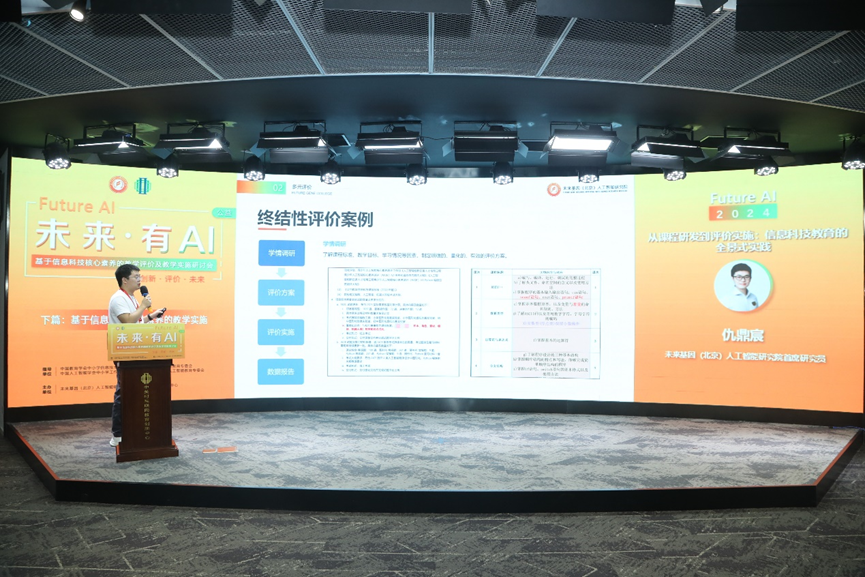 最后,未来基因(北京)人工智能研究院首席研究员仇鼎宸老师以《从课程研发到评价实施:信息科技教育的全景式实践》为主题,分享了研究院的实践探索和研究成果。